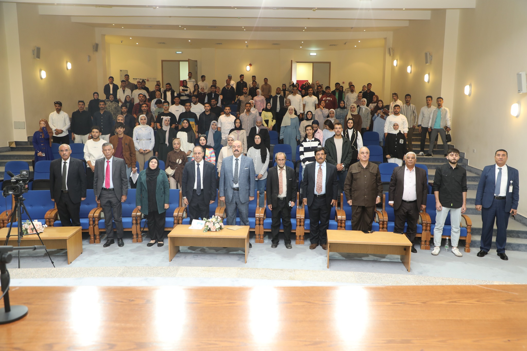 في البداية هنأ عميد الكلية الأستاذ الدكتور عاهد ابو ذويب الطلبة نيابة عن رئيس الجامعة الأستاذ الدكتور أسامة نصير الطلبة الجدد على اختيارهم للجامعة للدراسة فيها، مؤكداً على أن الكلية هي منارة للمعرفة والتحليل والتفكير النقدي ، وهي المكان الذي يصقل فيه وعي الشباب تجاه قضايا الأمه والوطن، وأجعلوا من وقتكم فرصة لإكتساب المهارات، وتعزيز الثقة بالنفس، والالتزام بقيم الإحترام والمسؤولية .