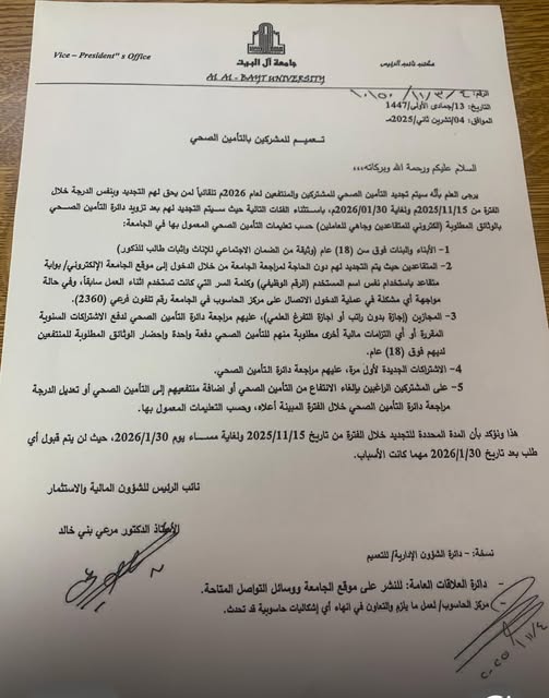 تعميم للمشتركين والمنتفعين بالتأمين الصحي