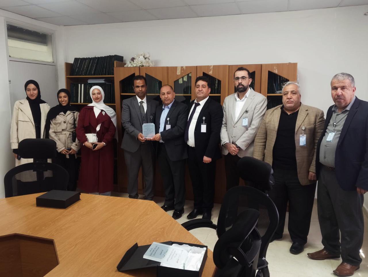 وبهذه المناسبة قدّم عميد الكلية الأستاذ الدكتور سامر الدلالعة درع المسابقة إلى رئيس الجامعة الأستاذ الدكتور أسامة نصير تكريماً ودعماً لجهود الجامعة في الارتقاء بالعمل الأكاديمي.