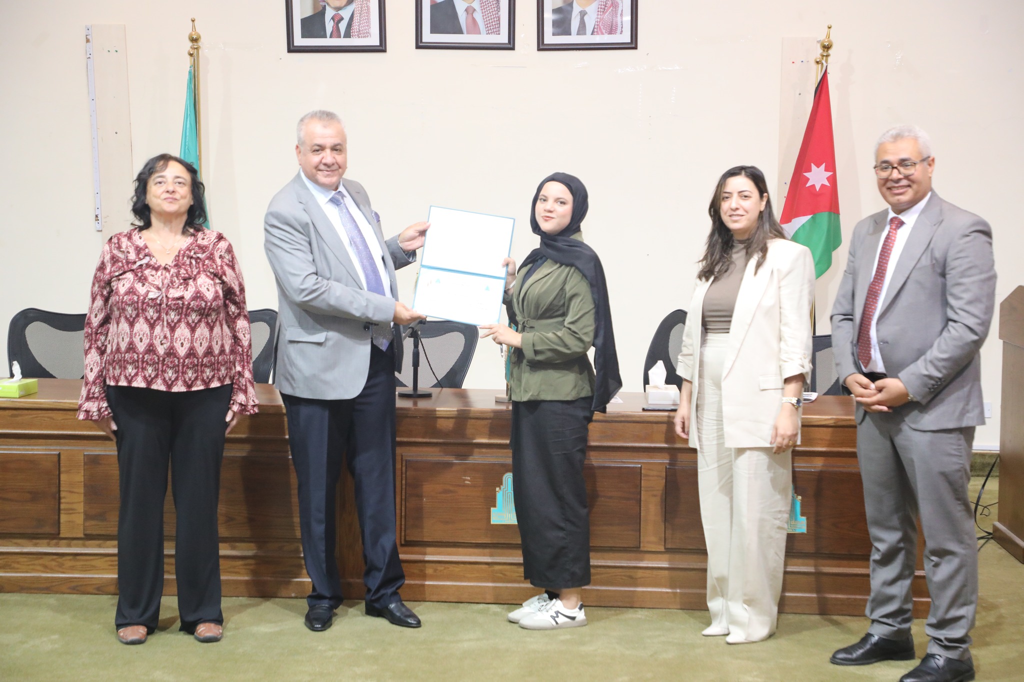 وقام نائب عميد الكلية د. محمد سالم المصطفى بتكريم الطالبة يارا سعادة الفائزة بالمركز الأول بجائزة الترجمة الأدبية "عيسى الناعوري" التي نظمتها السفارة الإيطالية بالتعاون مع جمعية دانتي أليجييري في عمان في إطار الاحتفال بأسبوع اللغة الإيطالية لعام 2025.